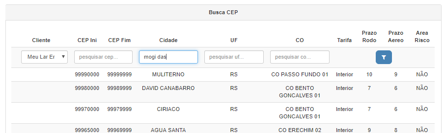 Tarifa : Defini se o CEP é atendido com tarifa INTERIOR ou tarifa CAPITAL