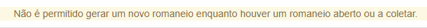 O sistema permite somente um romaneio ABERTO por vez. Caso você tente adicionar um segundo romaneio a mensagem de alerta será gerada.