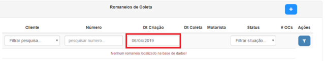 Se o sistema apresentar a mensagem acima e você não estiver visualizando nenhum romaneio ABERTO, confirme se o existe algum filtro de data no relatório.