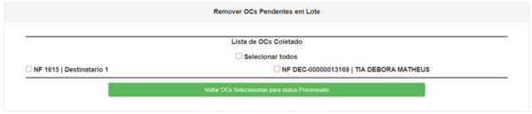 Será listada todas as OCs que atendam a condição desejada. Selecione as OCs e clique no botão Processar