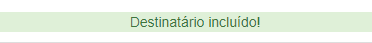 O sistema irá retornar para a listagem de destinatários, e se o cadastro estiver ok, o novo cliente será incluido e uma mensagem de sucesso mostrada.